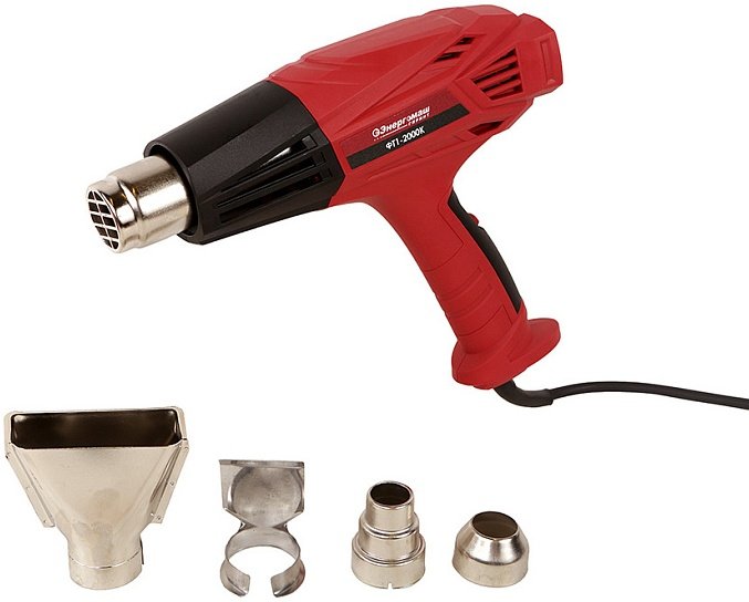 Фен технический ФТ1-2000К Энергомаш ГАРАНТ 2000Вт, 450/600С, 250/500л/мин, 4 насадки,кейс