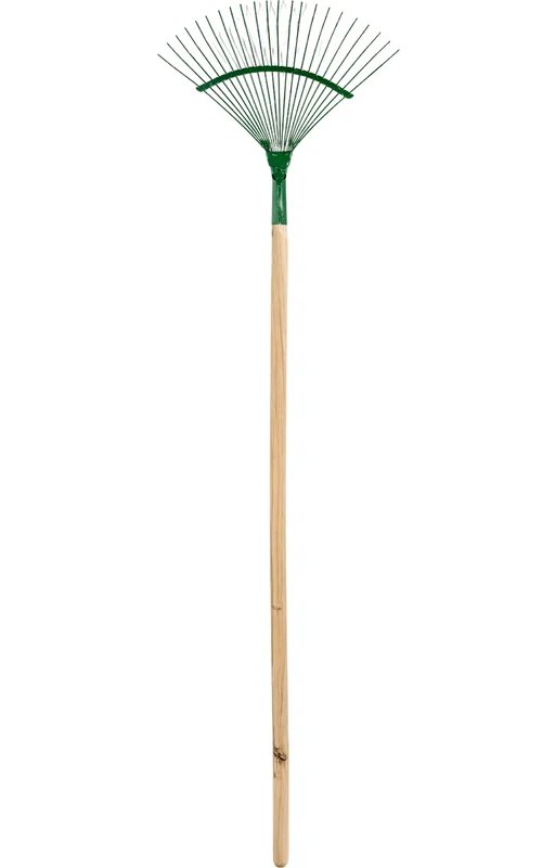 Веерные проволочные грабли с черенком служат для уборки скошенной травы, опавших листьев и другого мусора с садовой территории. Могут использоваться для выравнивания и рыхления почвы на грядах и клумбах. Пружинистые зубья, согнутые под углом, позволяют работать на неровной поверхности. Грабли укомплектованы деревянным черенком, благодаря чему инструмент полностью готов к использованию.