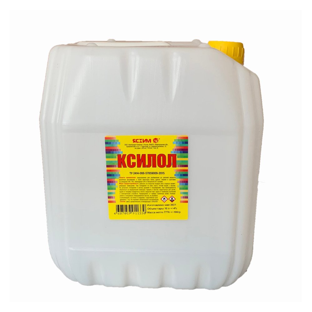 Ксилол 10л евро Ясхим добавляется небольшими порциями к лакокрасочному материалу до получения необходимой консистенции. Предназначен для разбавления красок, лаков, эмалей и грунтовок на битумной, алкидной и эпоксидной основах, а также приготовления клея.