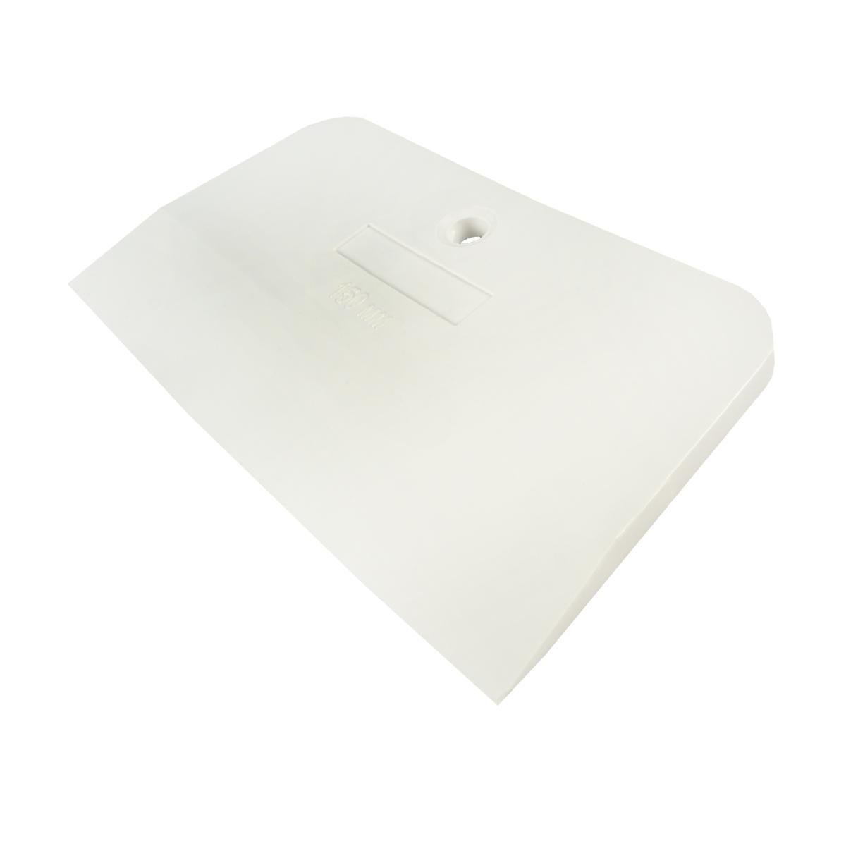 Шпатель изготовлен из белой резины. Небольшой размер инструмента, прочность и гибкость позволяют с точностью наносить материал. Шпатель гибкий и не царапает поверхность, так же им удобно работать в углах, нишах и других труднодоступных местах. Ширина шпателя: 150 мм.
