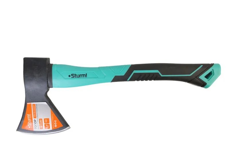 Топор фиберглассовая обрезиненная рукоятка 1000 гр Sturm! 1015-05-1000SP - зготовлен из кованой высококачественной стали, что обеспечивает сохранение формы на протяжении всего срока службы. Лезвие покрыто специальной порошковой краской для защиты от коррозии. Лезвие закалено индукционным методом и держит заточку при самых тяжёлых условиях работы. Обрезиненная фиберглассовая рукоятка гасит вибрацию от удара и обеспечивает надёжный захват. Предназначен для колки и рубки дерева.