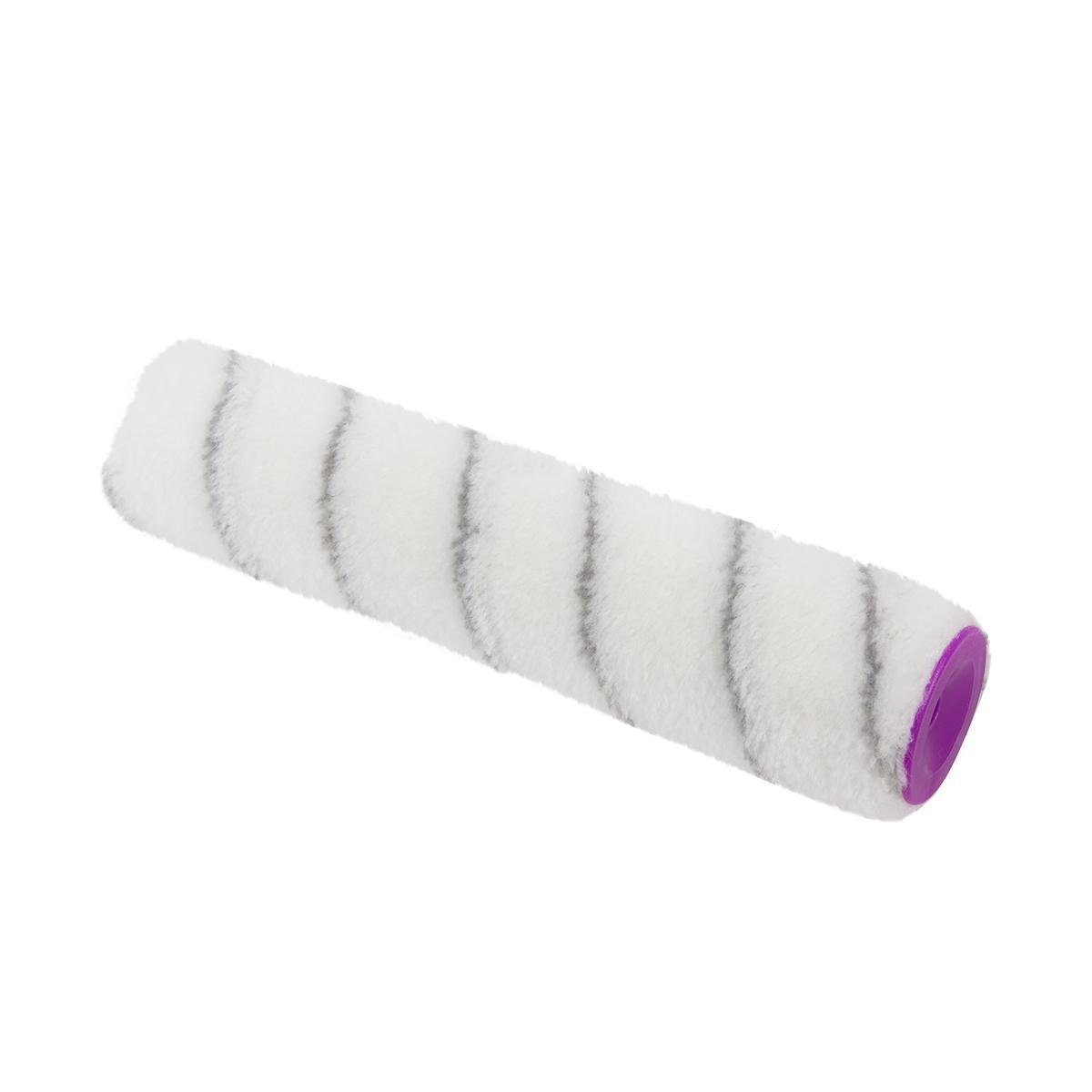 Запасной валик выполнен из полиакрила и имеет высоту ворса 12 мм. Ширина ролика 250 мм, диаметр 48 мм. При окрашивании ворс из шубки не выпадает, лакокрасочный материал ложится на поверхность без дефектов.